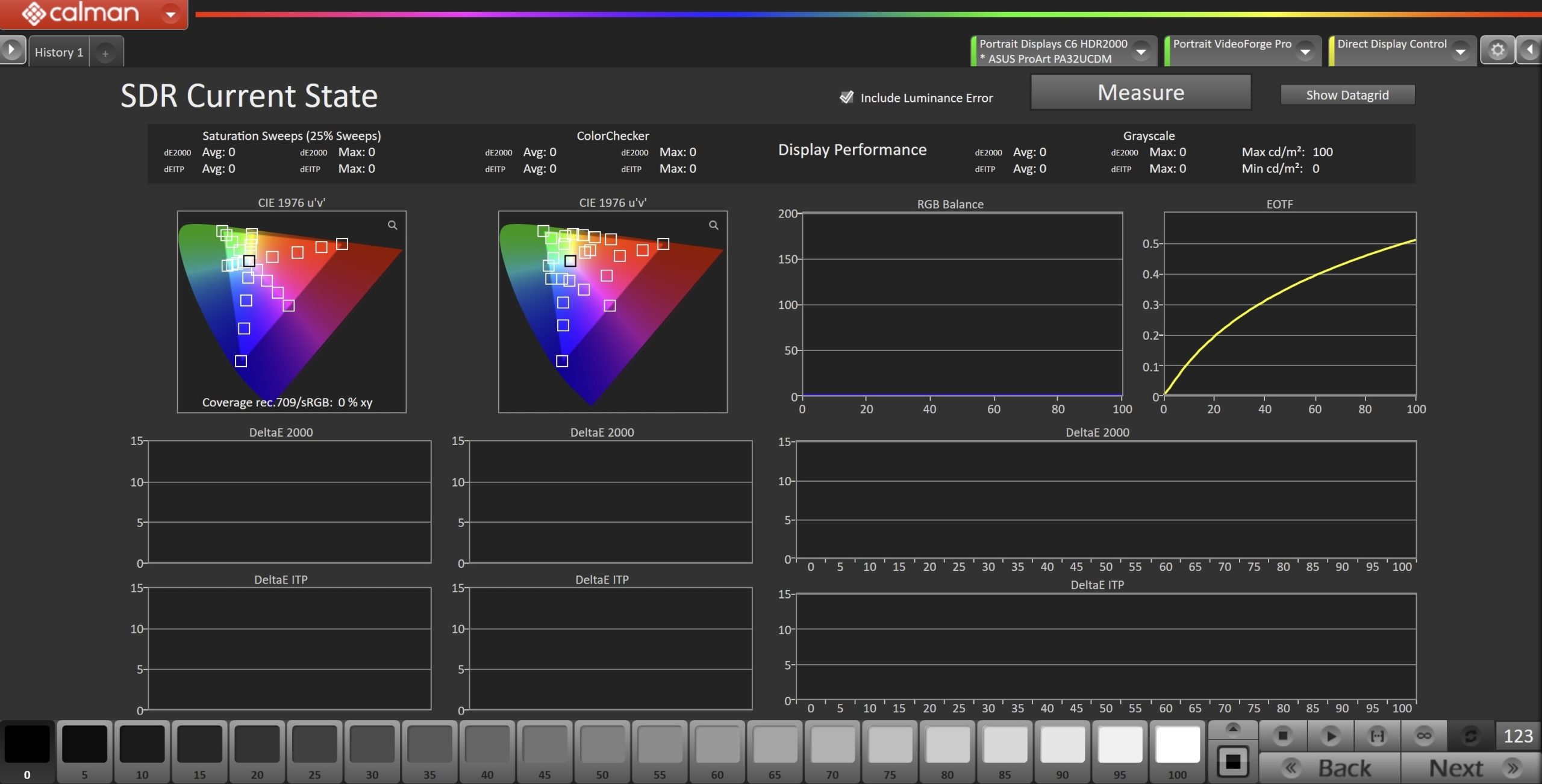 - To take Current State Measurements, click the Measure button to measure the display’s rayscale and color response.