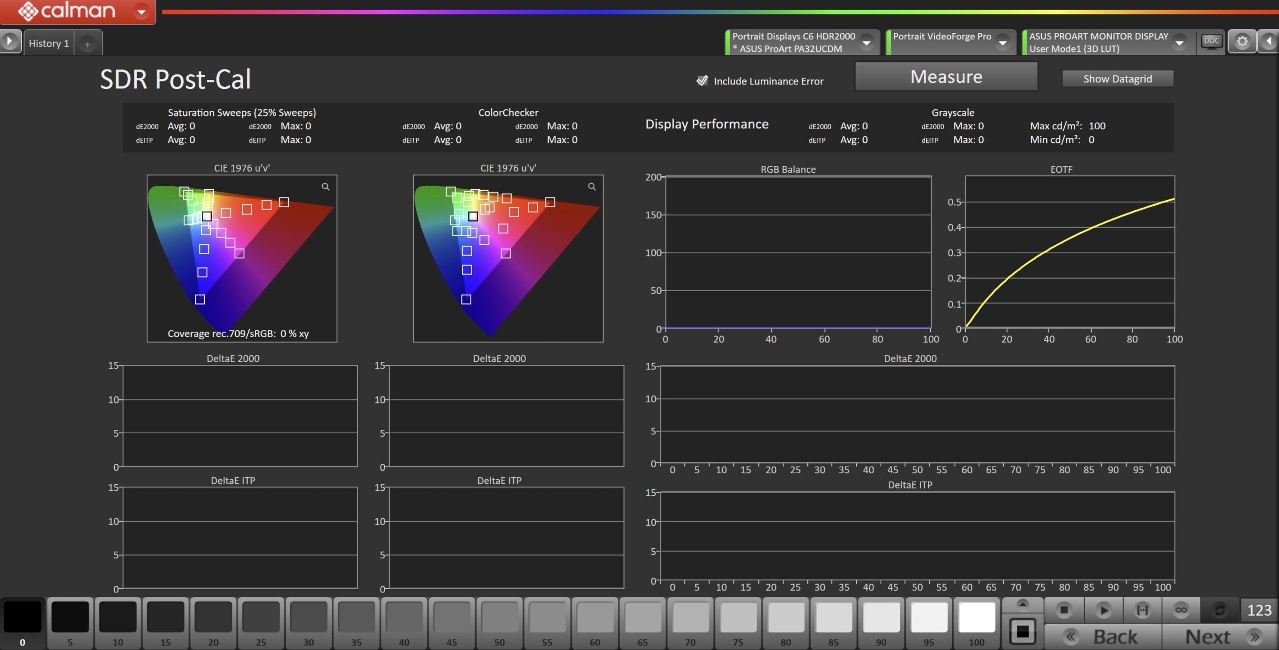 - To take Post-Calibration Measurements, click the Measure button to measure the display’s grayscale and color response.