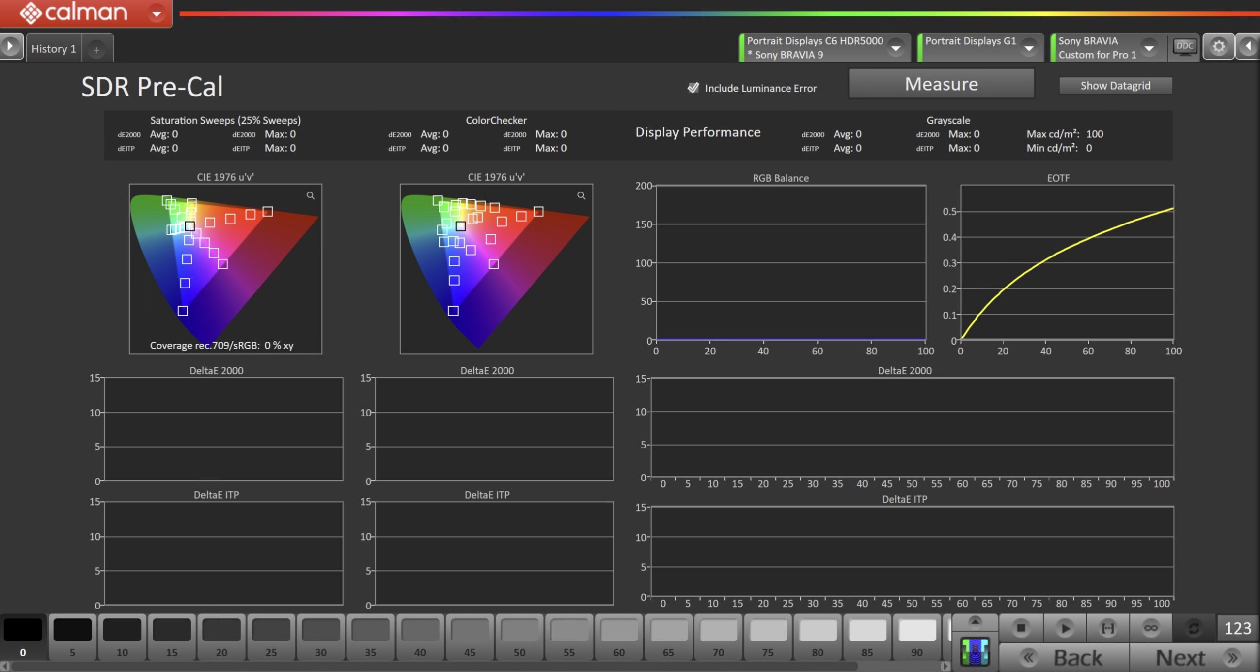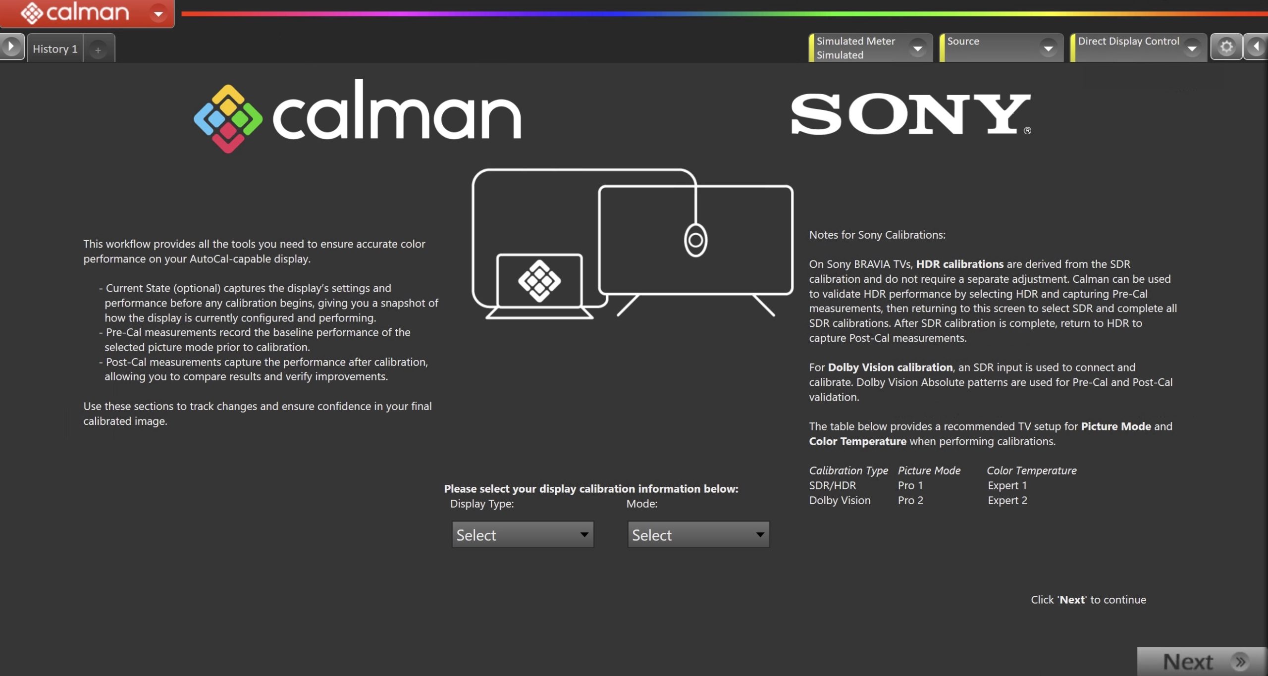- On Sony BRAVIA TVs, HDR calibrations are derived from the SDR calibration and do not require a separate adjustment. Calman can be used to validate HDR performance by selecting HDR and capturing Pre-Cal measurements, then returning to this screen to select SDR and complete all SDR calibrations. After SDR calibration is complete, return to HDR to capture Post-Cal measurements.