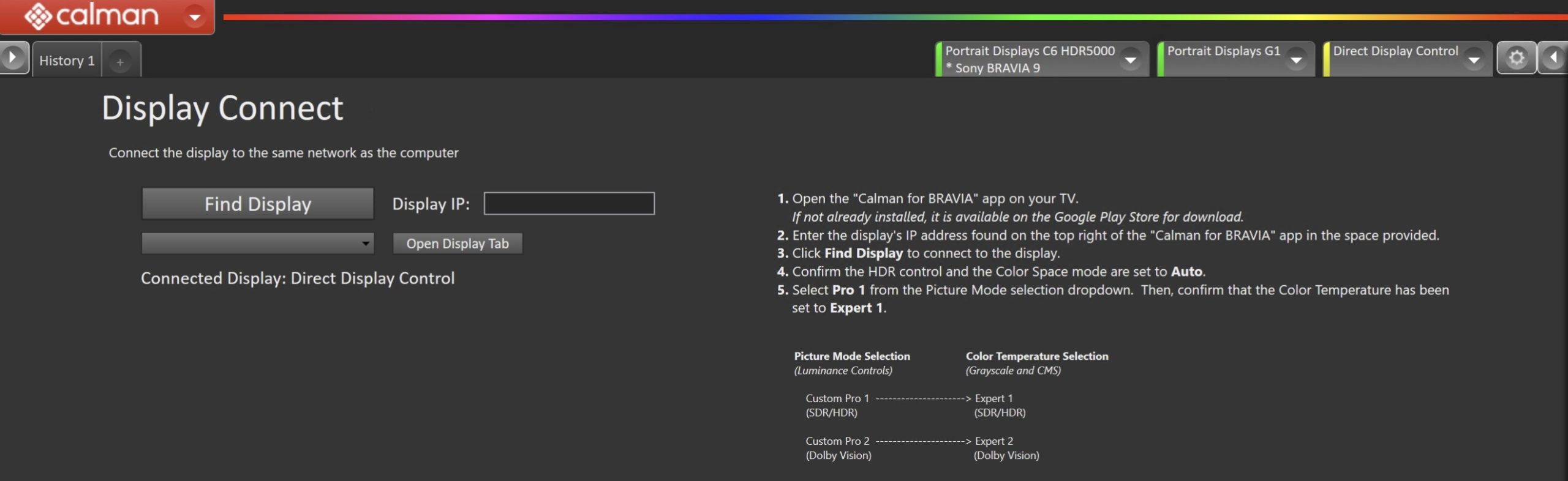 - Enter the IP address displayed in the Calman for BRAVIA app and click the Find Display Button