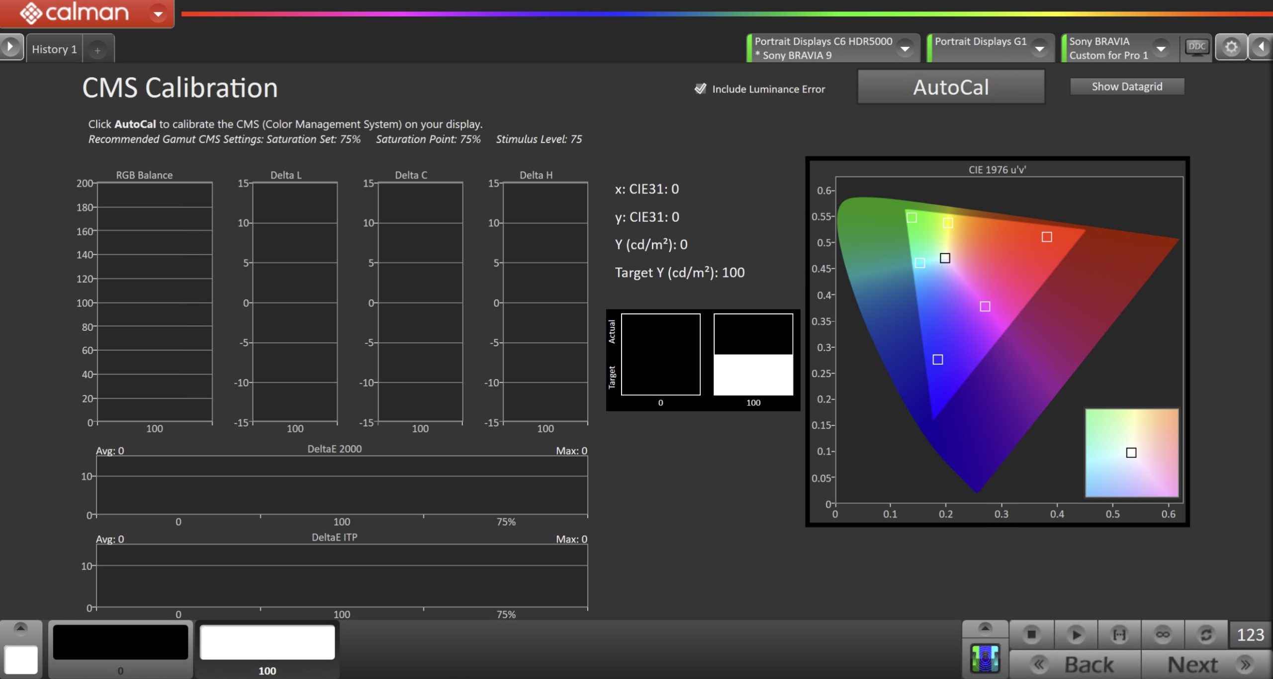 - On this page, Calman will calibrate the Color Gamut via built-in CMS controls.