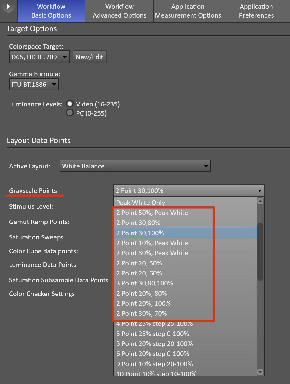 - Go to Calman Settings → Workflow Basic Options → Grayscale Points and select the number of points for the display you’re calibrating.