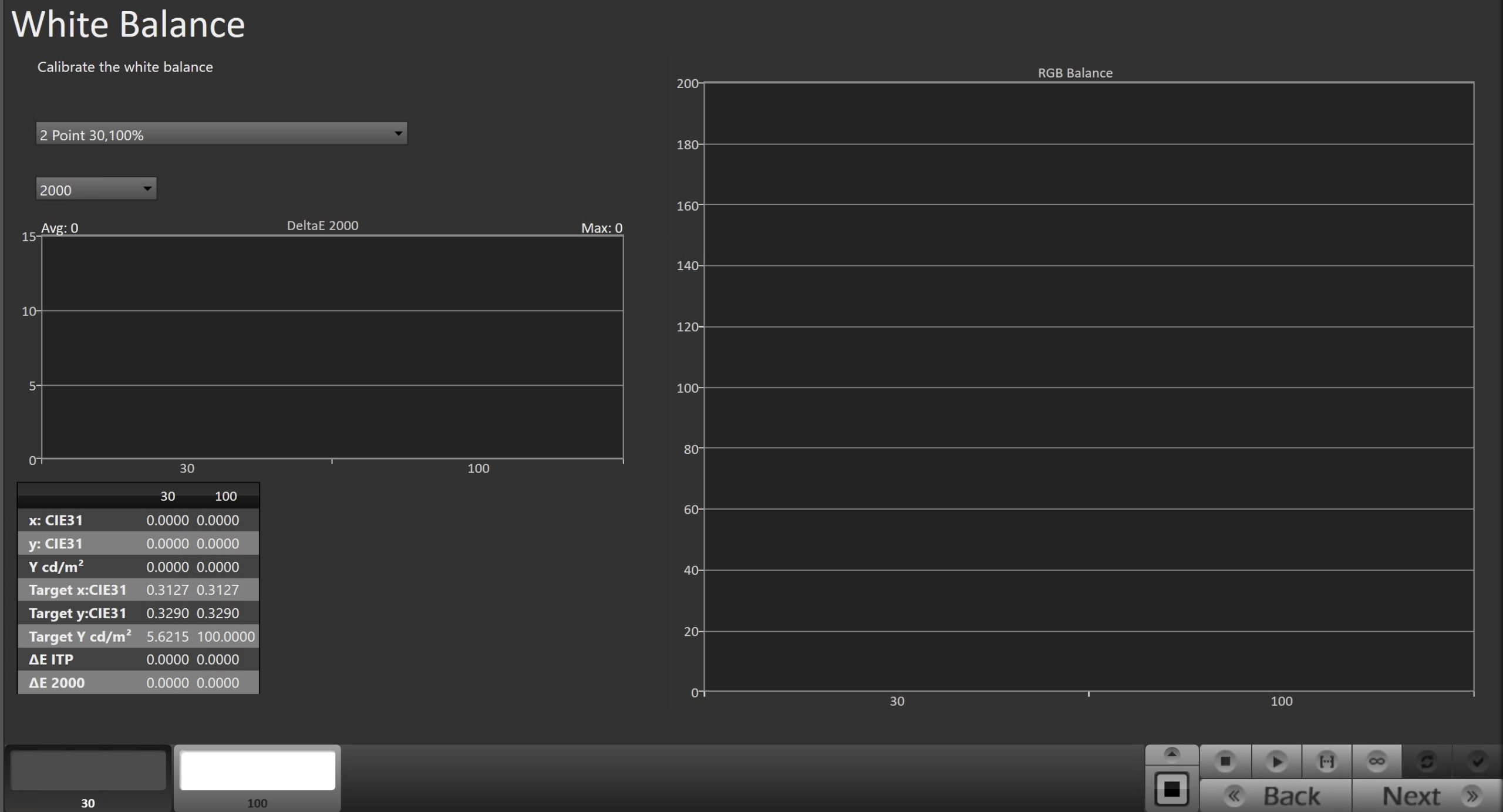Two-point white balance calibration adjusts the display’s color temperature at both the bright end and the dark end of the grayscale. This is done using two sets of RGB controls: