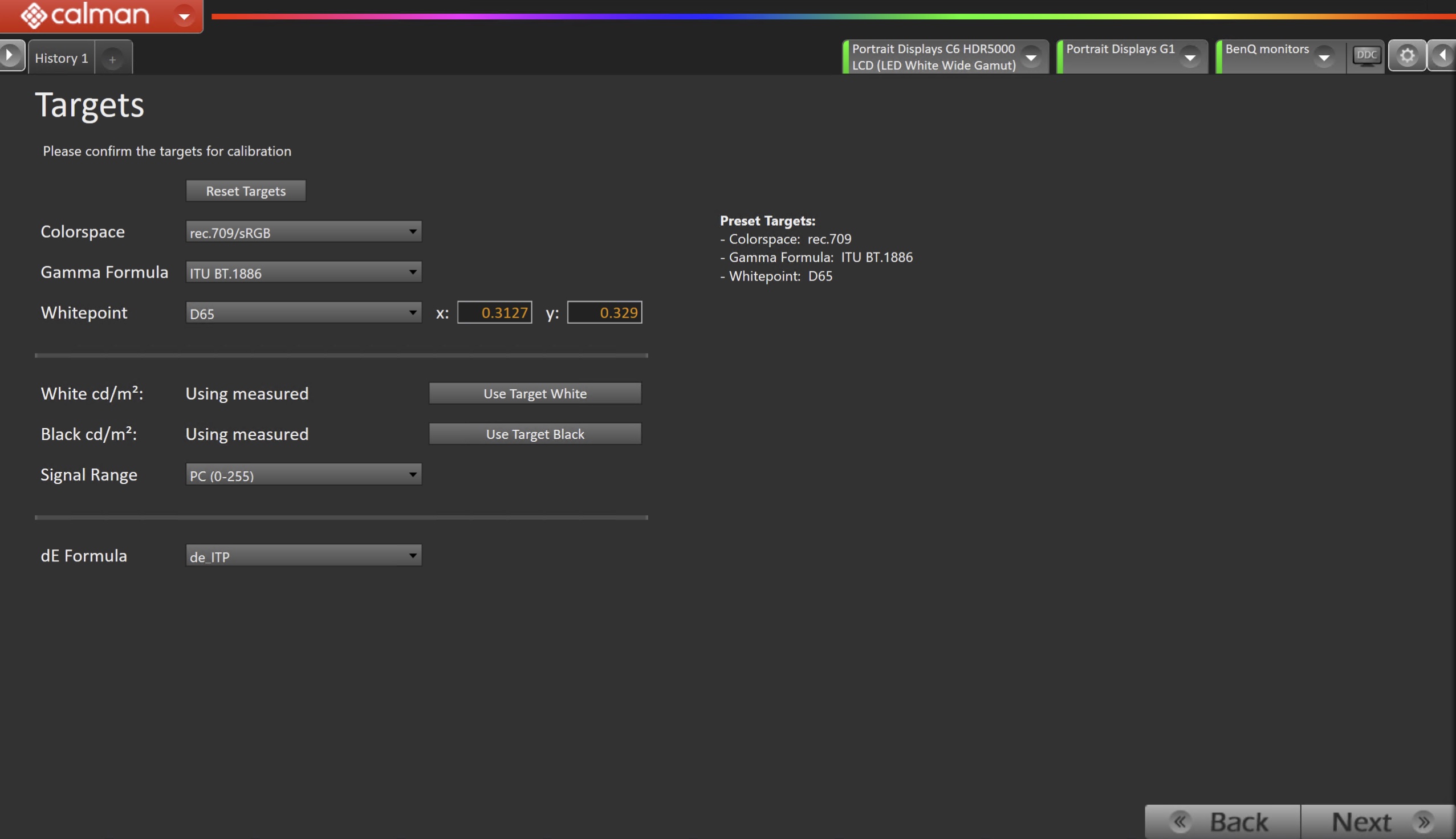 - Confirm/configure your calibration targets. These will be automatically set to common defaults by the options from Step 1