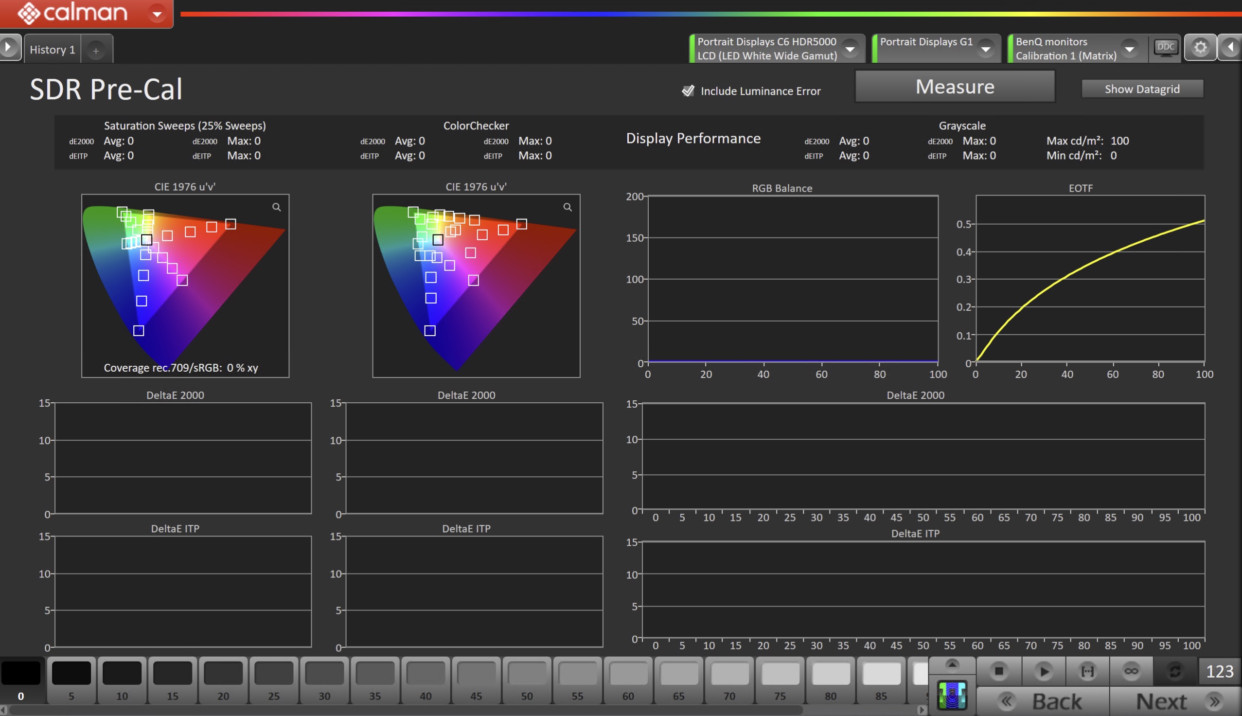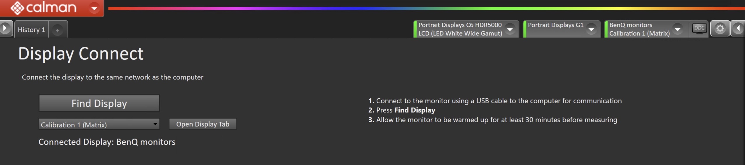 The BenQ Monitor Calibration workflow in Calman provides automated calibration for supported BenQ models. Depending on the monitor’s capabilities, Calman can load a full 3D LUT directly into the display or apply a 1D LUT paired with a color correction matrix. This workflow guides you through configuring your targets and performing accurate calibrations using the monitor’s internal processing.