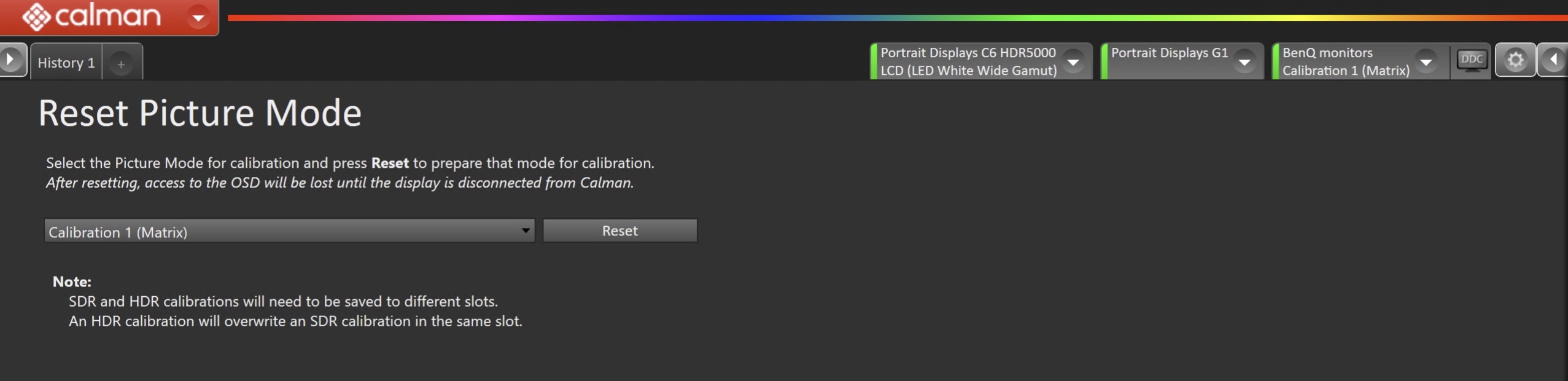 - Select the display mode and method you wish to calibrate, and click Reset to prepare the display for calibration