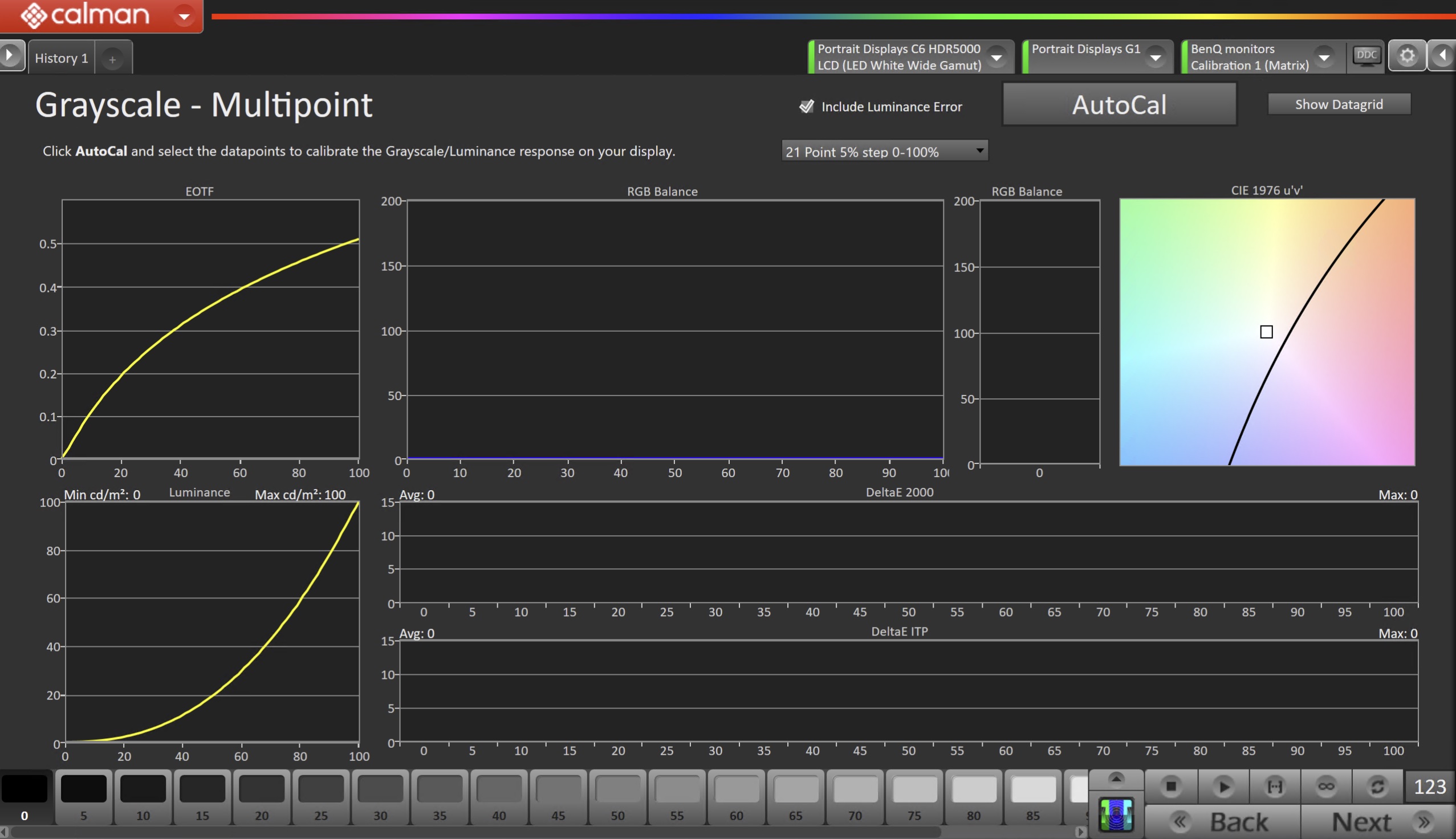 - Click the AutoCal button and select the number of data points in the AutoCal Dialog to auto-calibrate the Grayscale/Luminance response on the display.