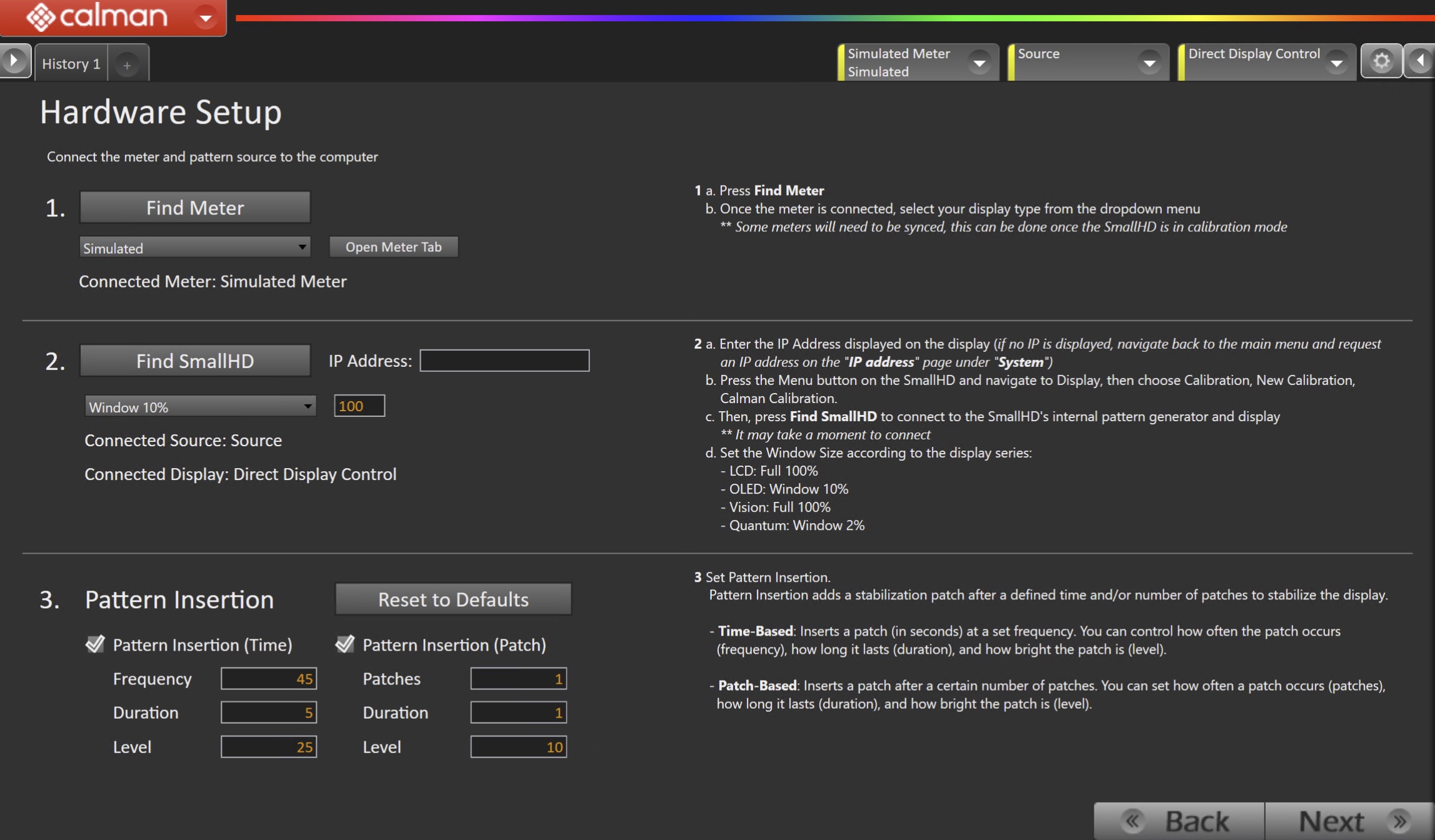 - Click the Reset to Defaults button to set the appropriate pattern insertion for the display and calibration type in Step 1