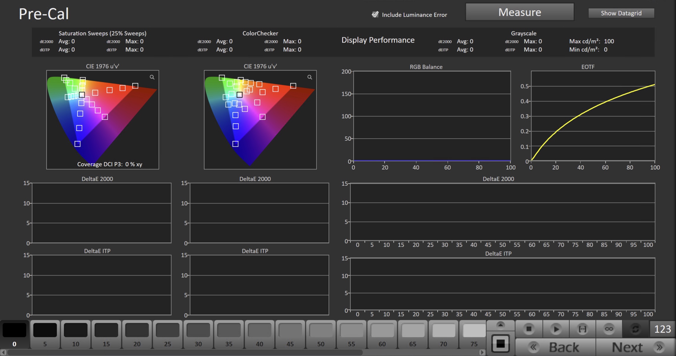 - To take Pre-Calibration Measurements, click the Measure button to measure the display’s rayscale and color response.