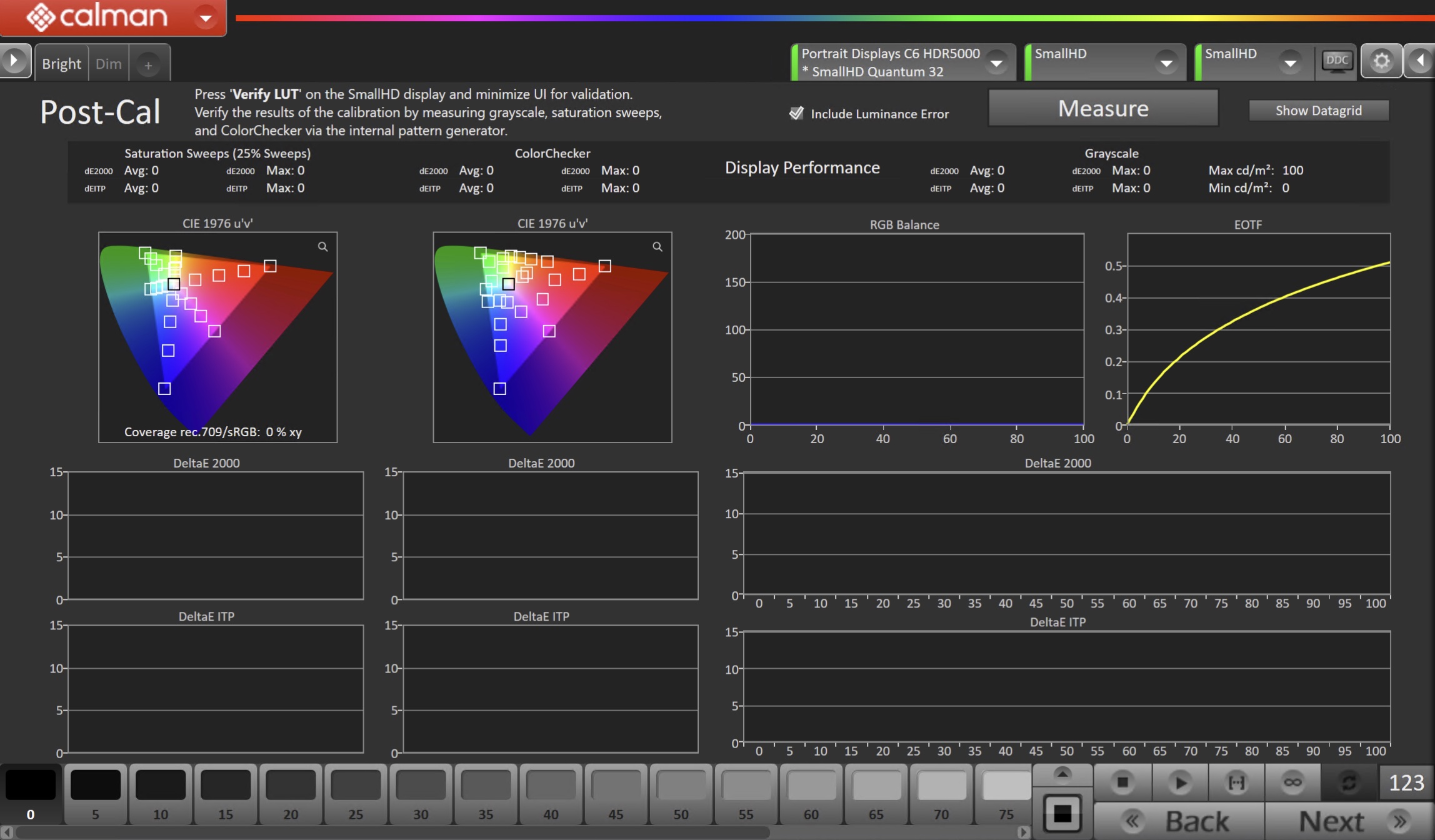 - Proceed on the display, then click Measure again to measure the black levels. Save the calibration on the SmallHD display before attempting external validation.