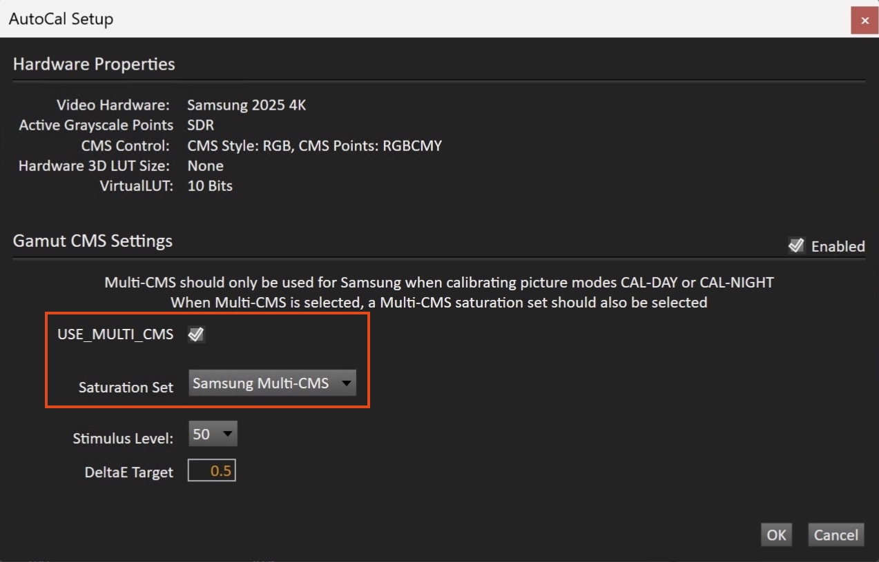 - When Multi-CMS is selected, a Multi-CMS saturation set should also be selected