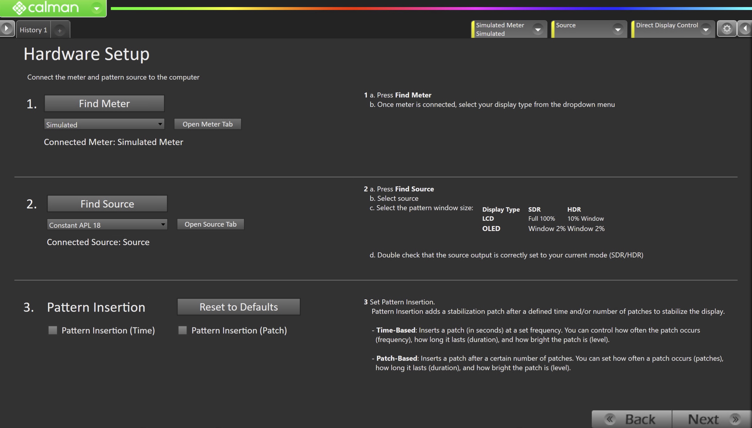 - Click the Reset to Defaults button to set the appropriate pattern insertion for the display and calibration type in Step 1