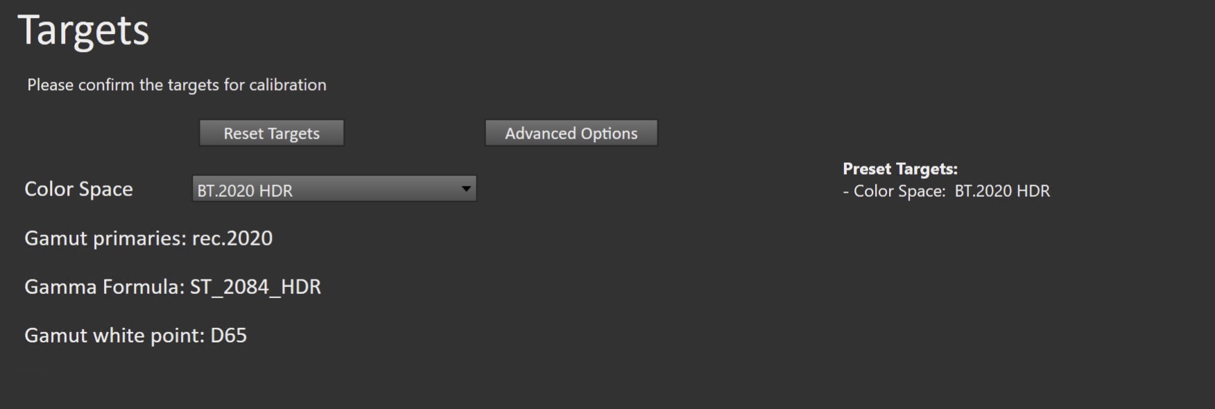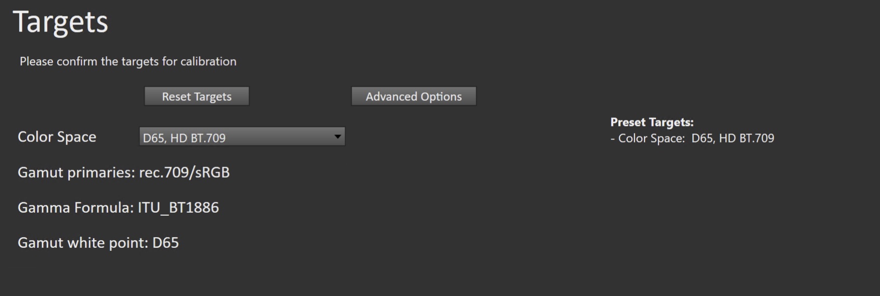 - Confirm/configure your calibration targets. These will be automatically set to common defaults by the options from Step 1