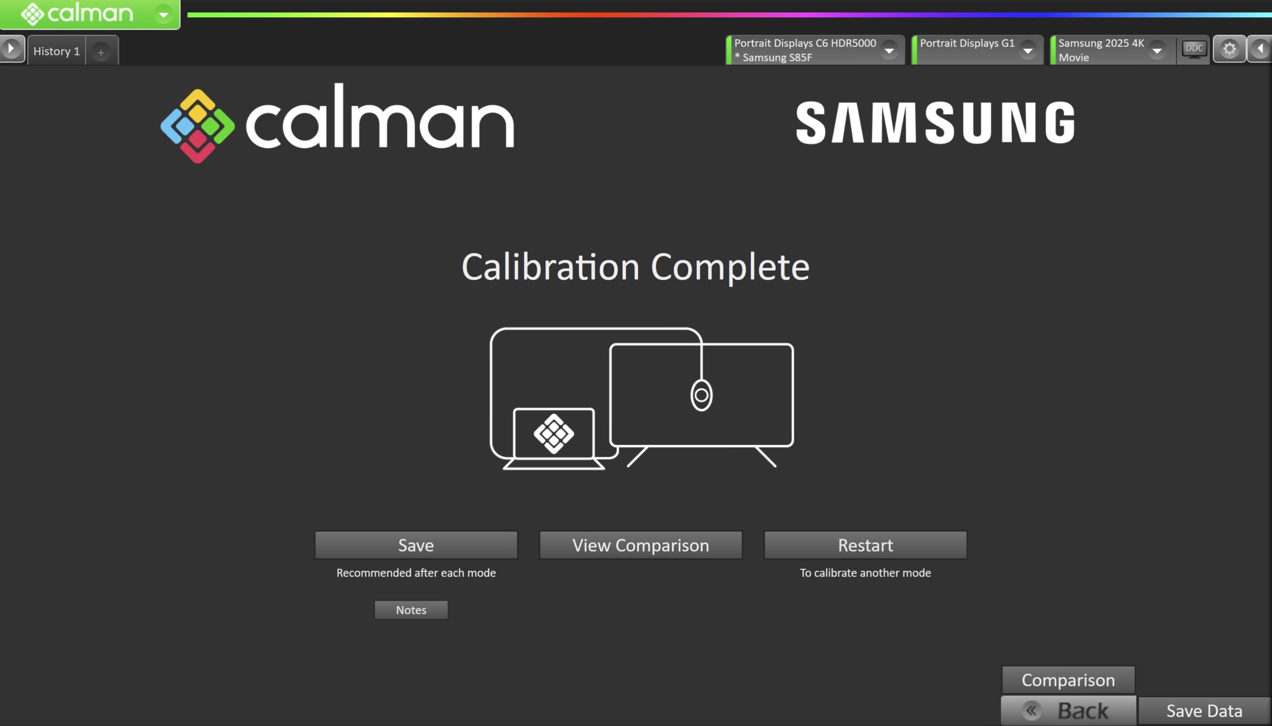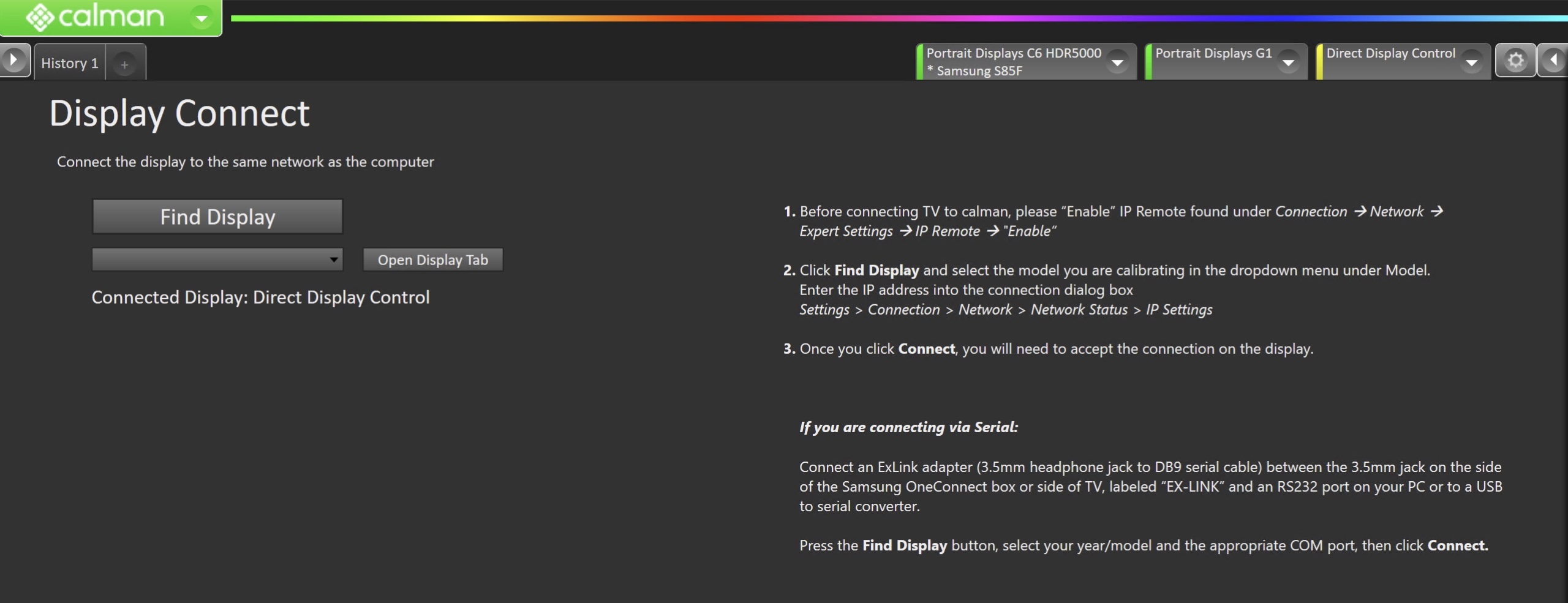 Calman Home supports direct calibration of Calman-Ready Samsung televisions. Using Samsung’s integrated calibration interface, Calman connects to the TV over a local network to automate grayscale, color, and gamma adjustments. This process ensures accurate, consistent image performance for both home entertainment.