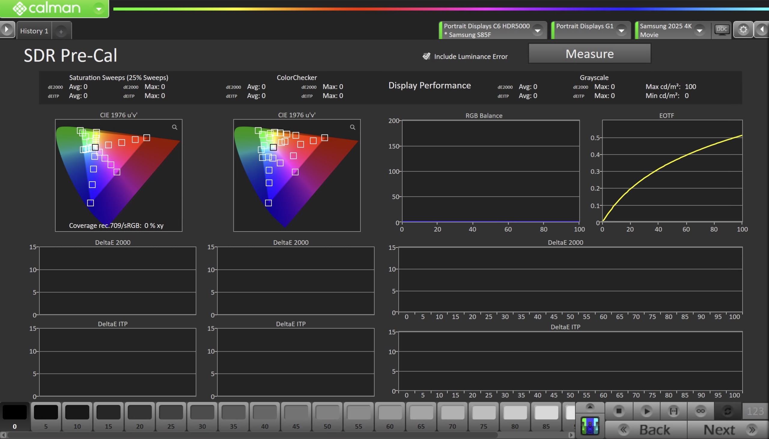- To take Pre-Calibration Measurements, click the Measure button to measure the display’s rayscale and color response.