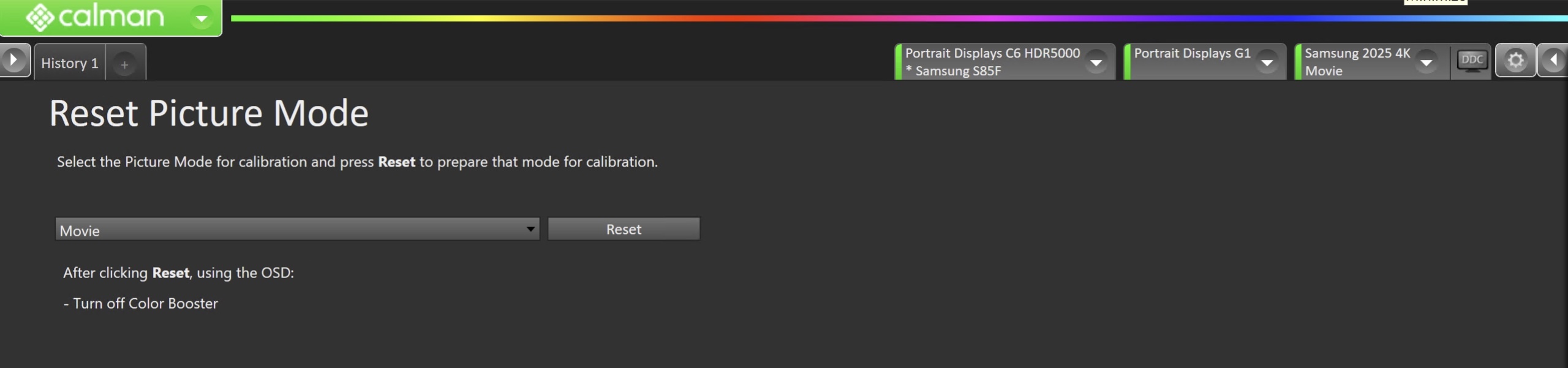 - Here, the Calman picture mode will be reset to prepare for calibration.