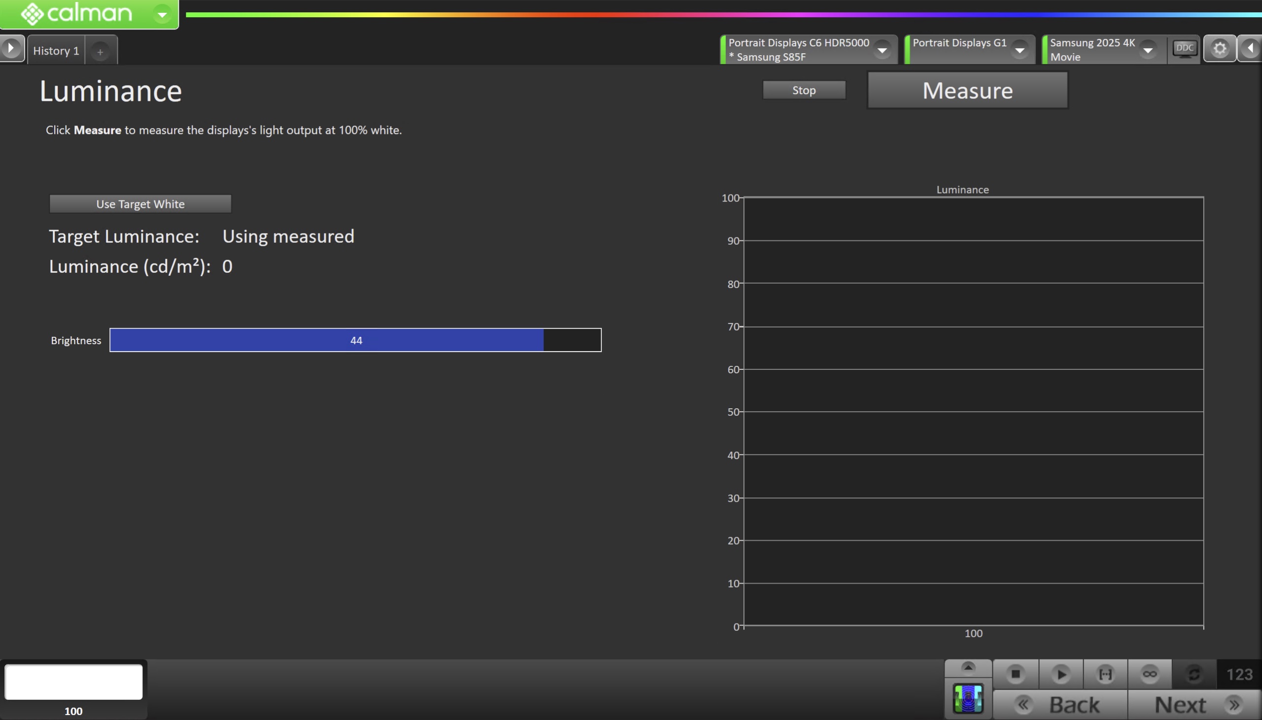 - To take Current State Measurements, click the Measure button to measure the display’s grayscale and color response.
