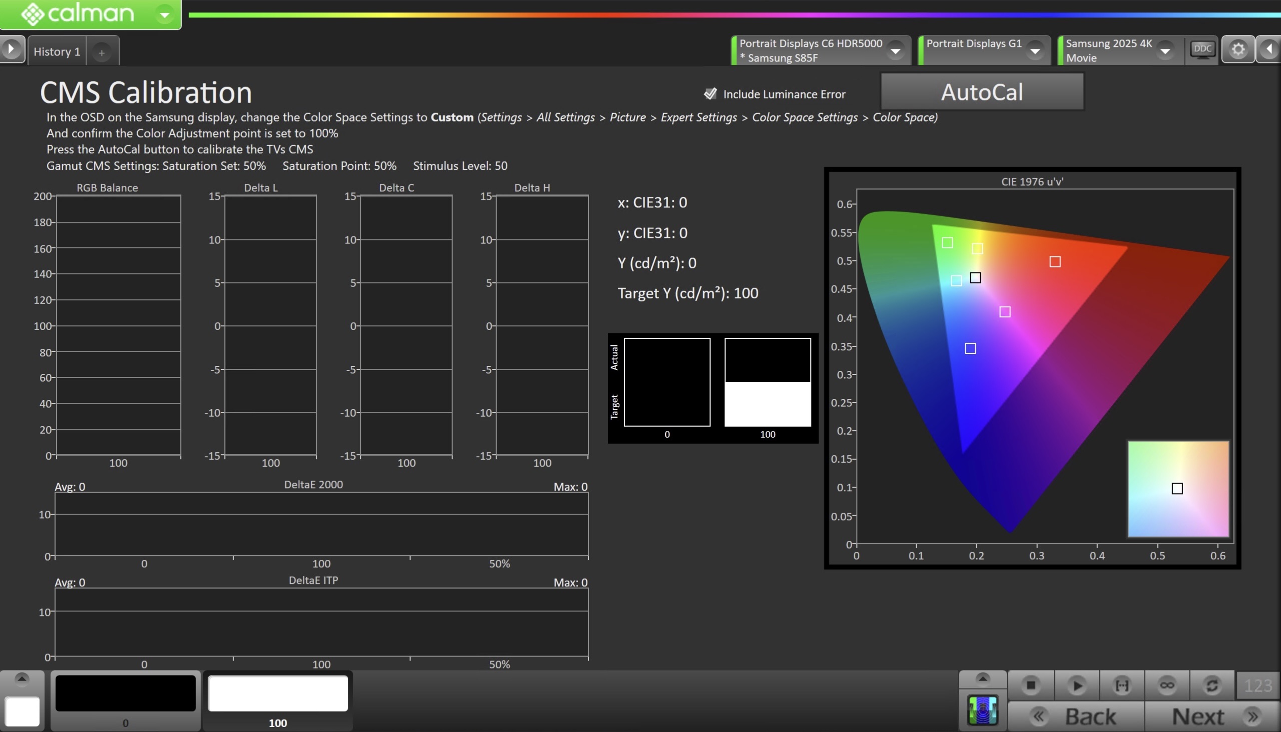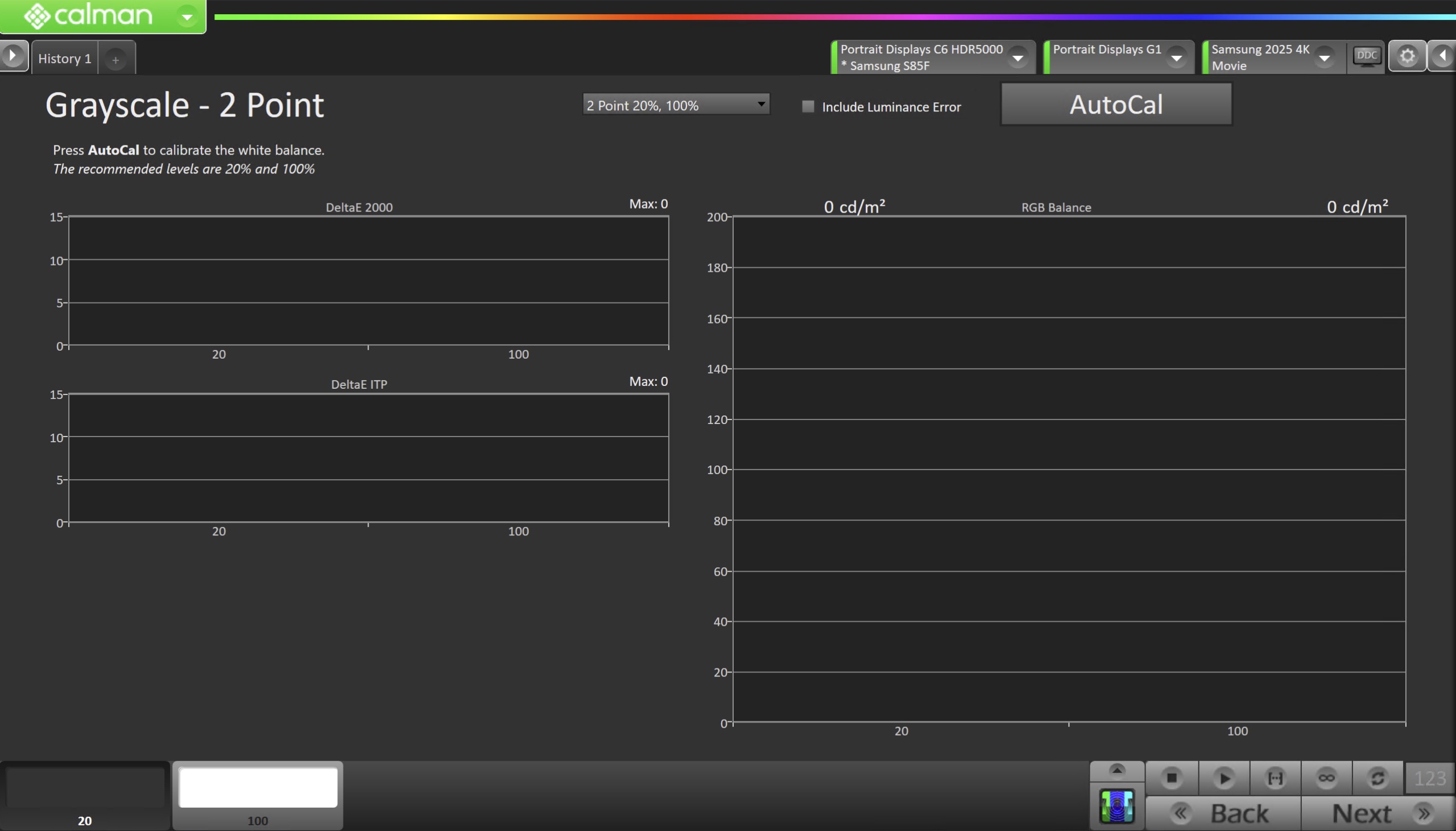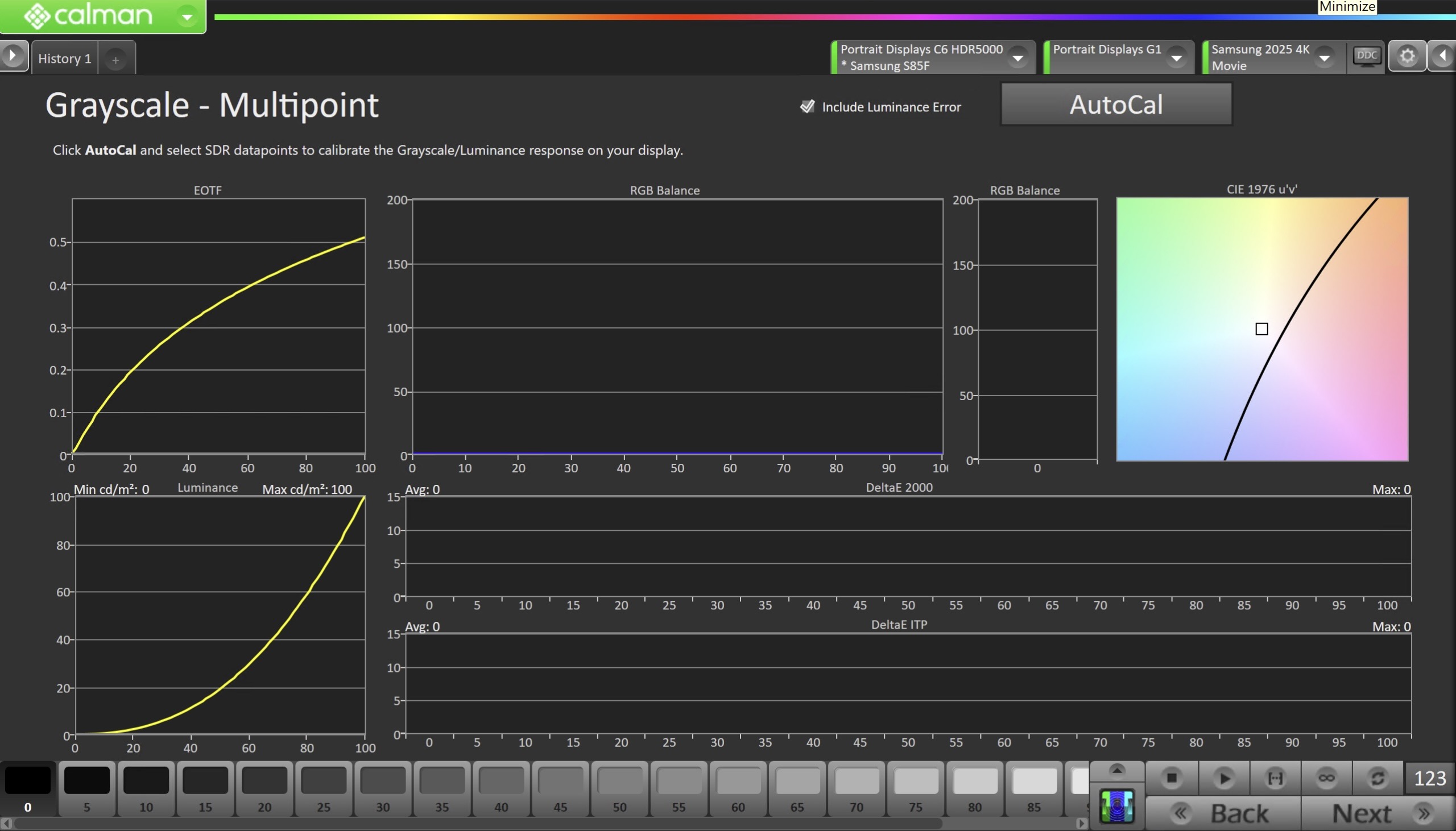 - Click the AutoCal button to perform the 2pt greyscale AutoCal
