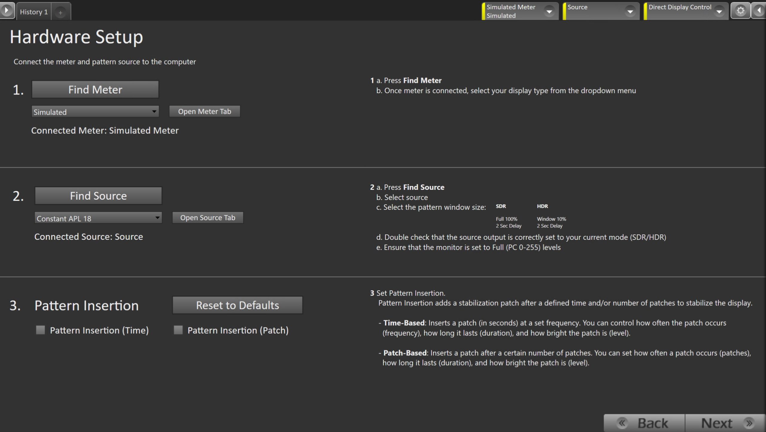 - Click the Reset to Defaults button to set the appropriate pattern insertion for the display and calibration type in Step 1
