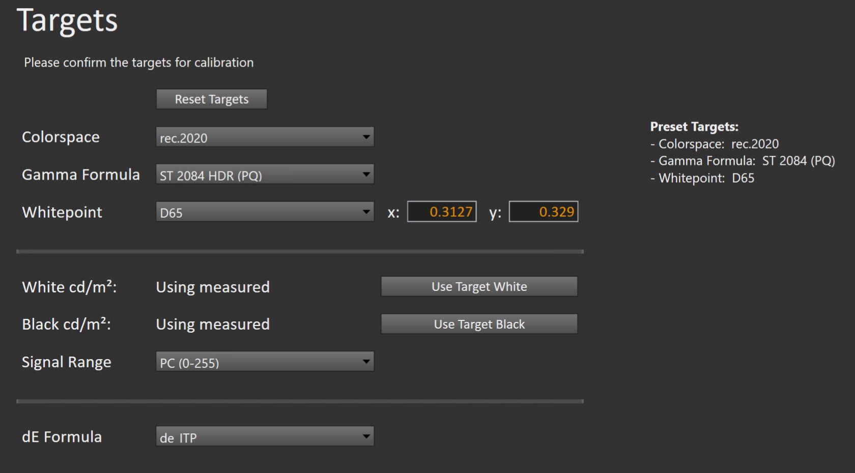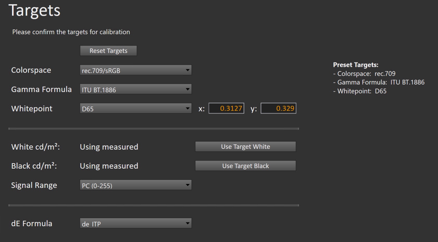 - Confirm/configure your calibration targets. These will be automatically set to common defaults by the options from Step 1