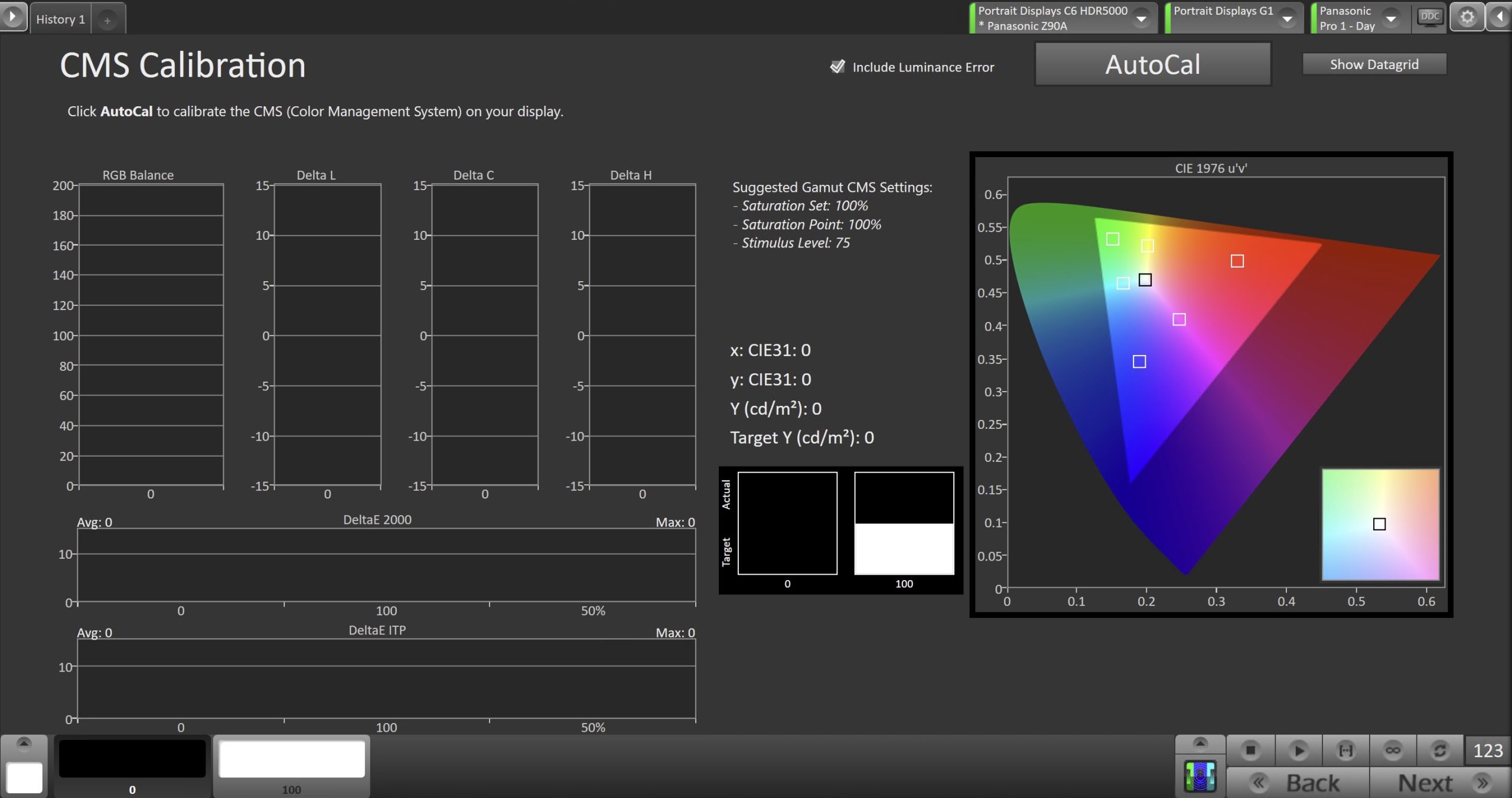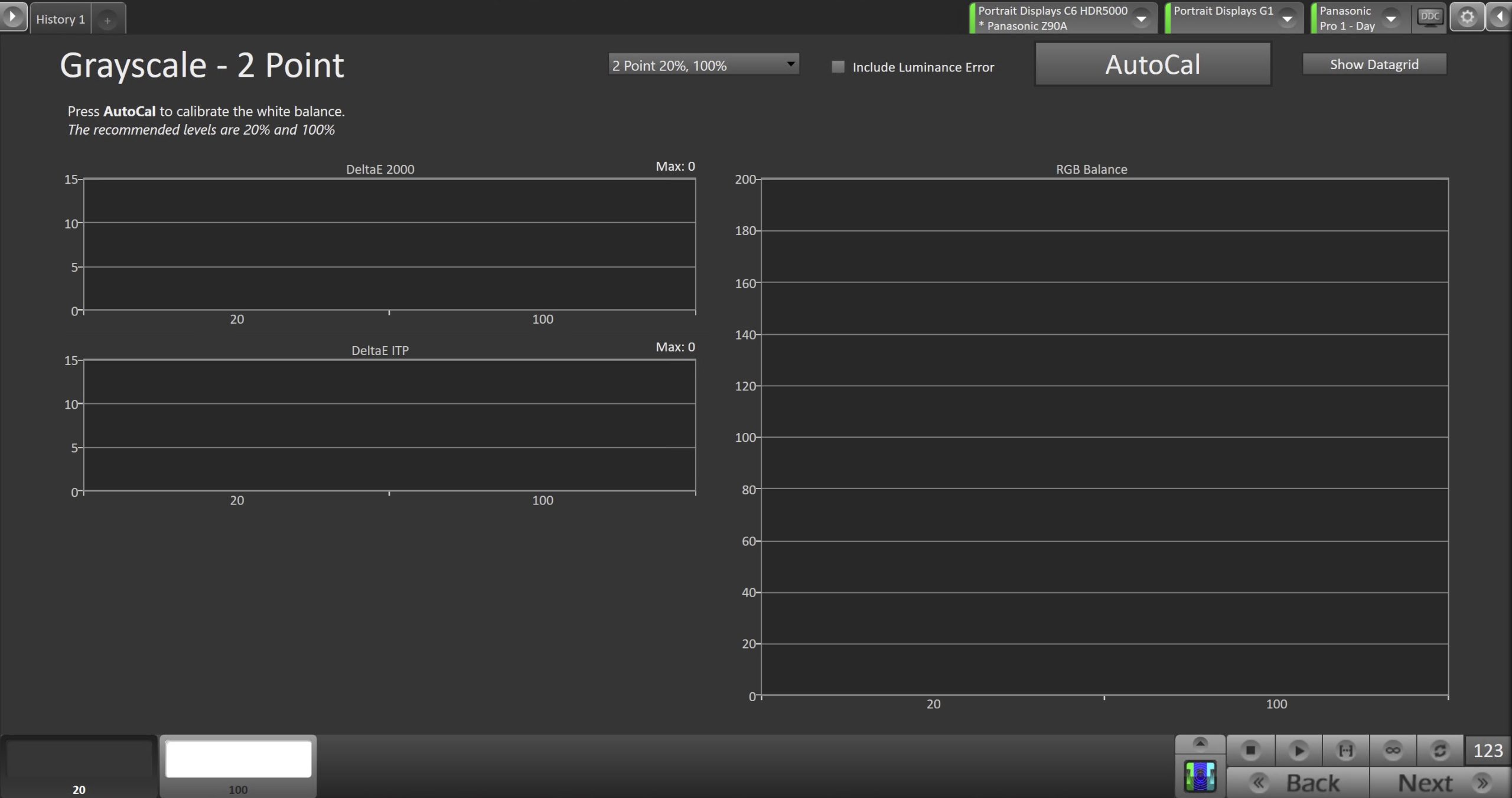 - Click the AutoCal button to perform the 2pt greyscale AutoCal