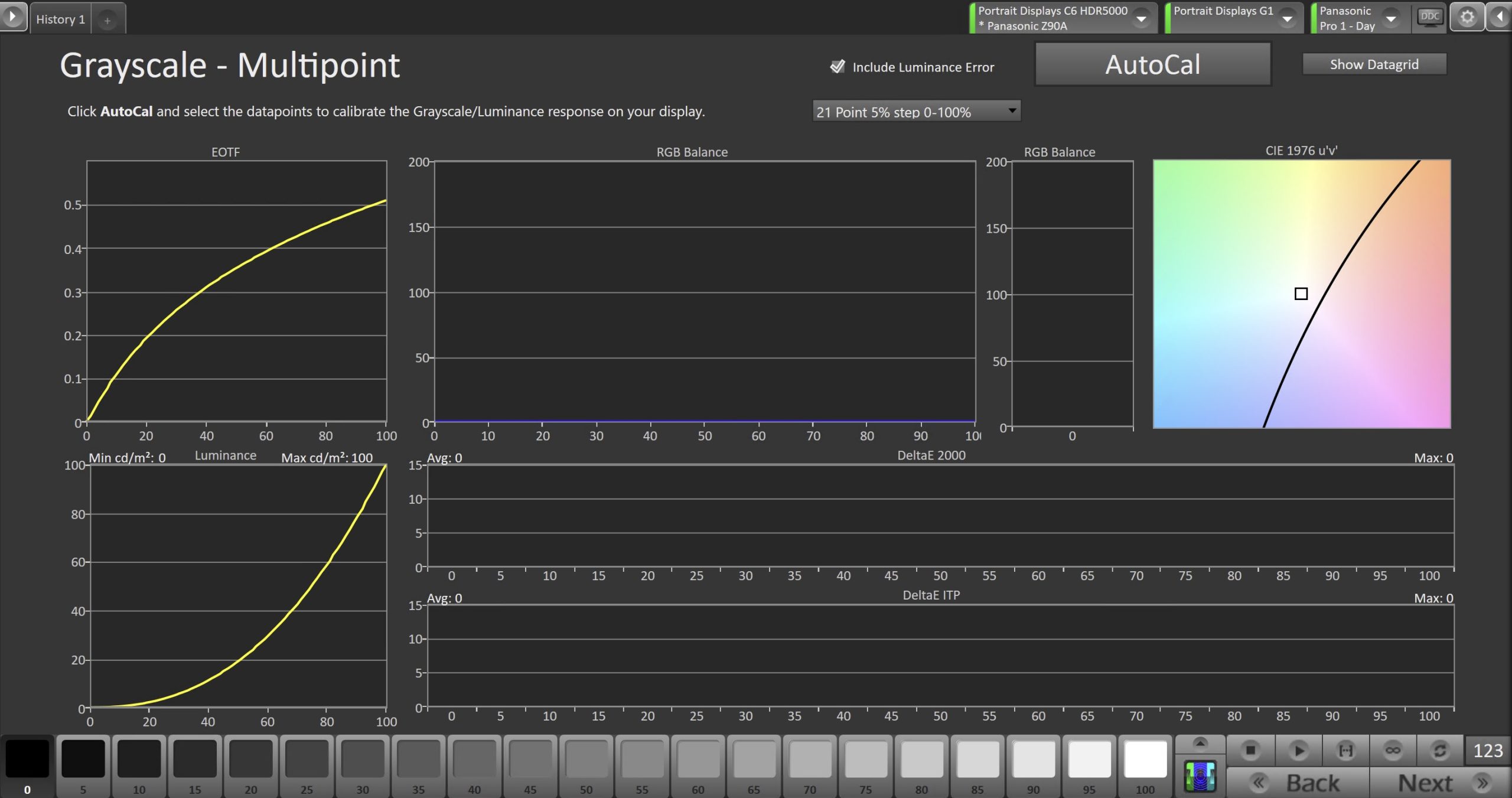 - Click the AutoCal button and select the correct data points in the AutoCal Dialog to auto-calibrate the Grayscale/Luminance response on the display.
