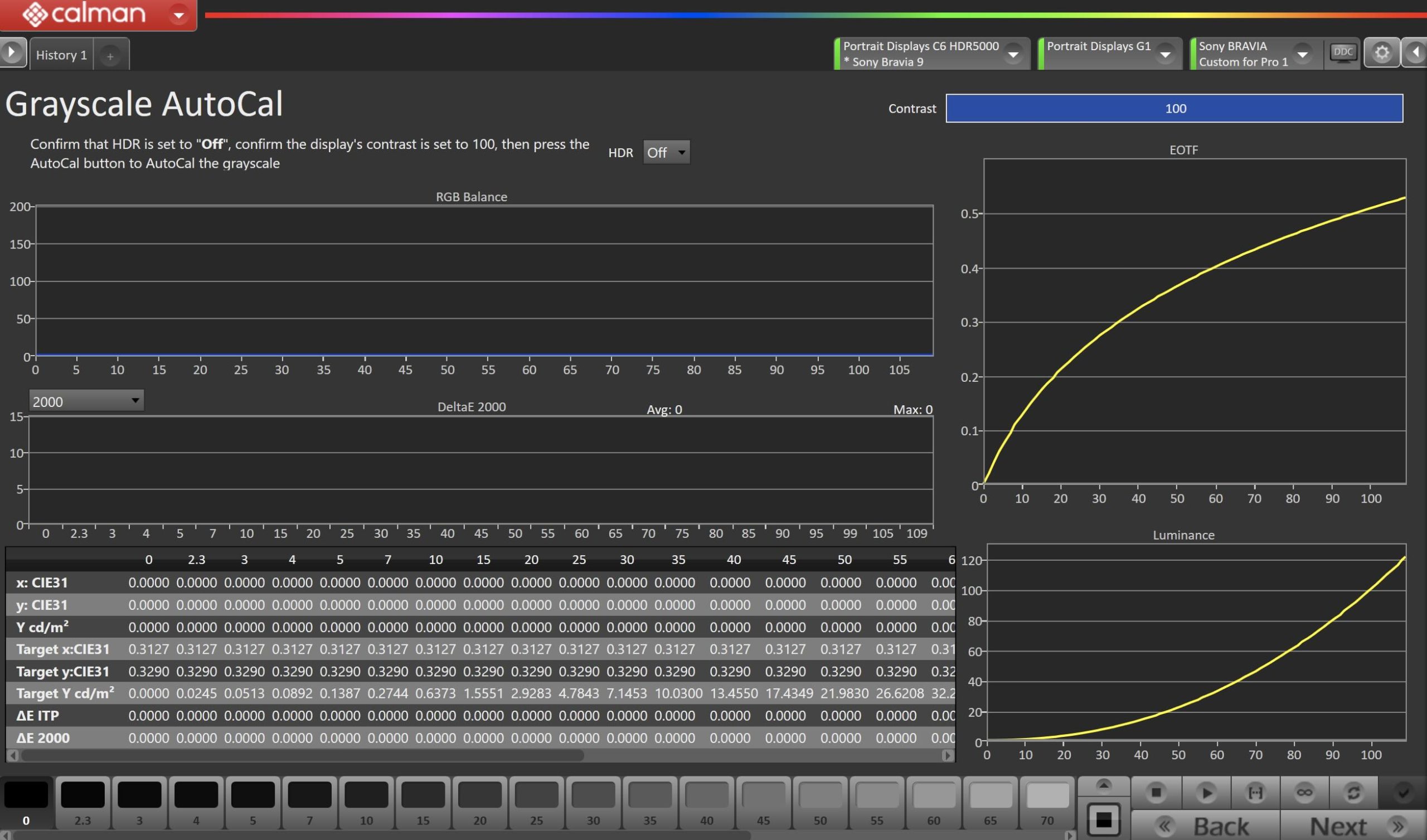 - You can validate it by changing Calman and your Pattern Generator to HDR settings (2.2 Gamma, D65, BT.2020, and retaking all the measurements by Read Series.