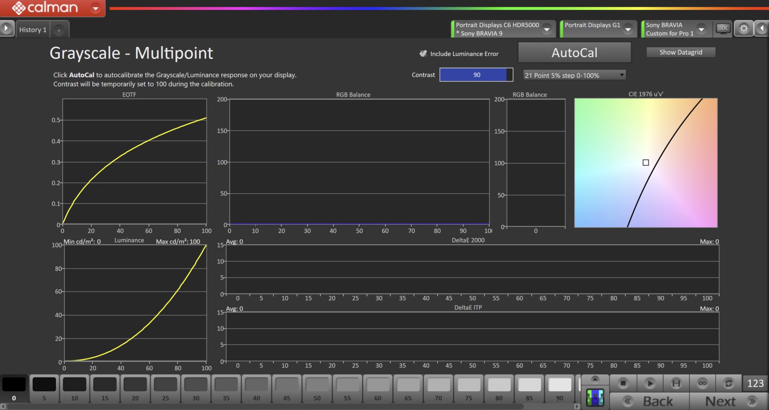 - Click the AutoCal button and select the correct data points in the AutoCal Dialog to auto-calibrate the Grayscale/Luminance response on the display.