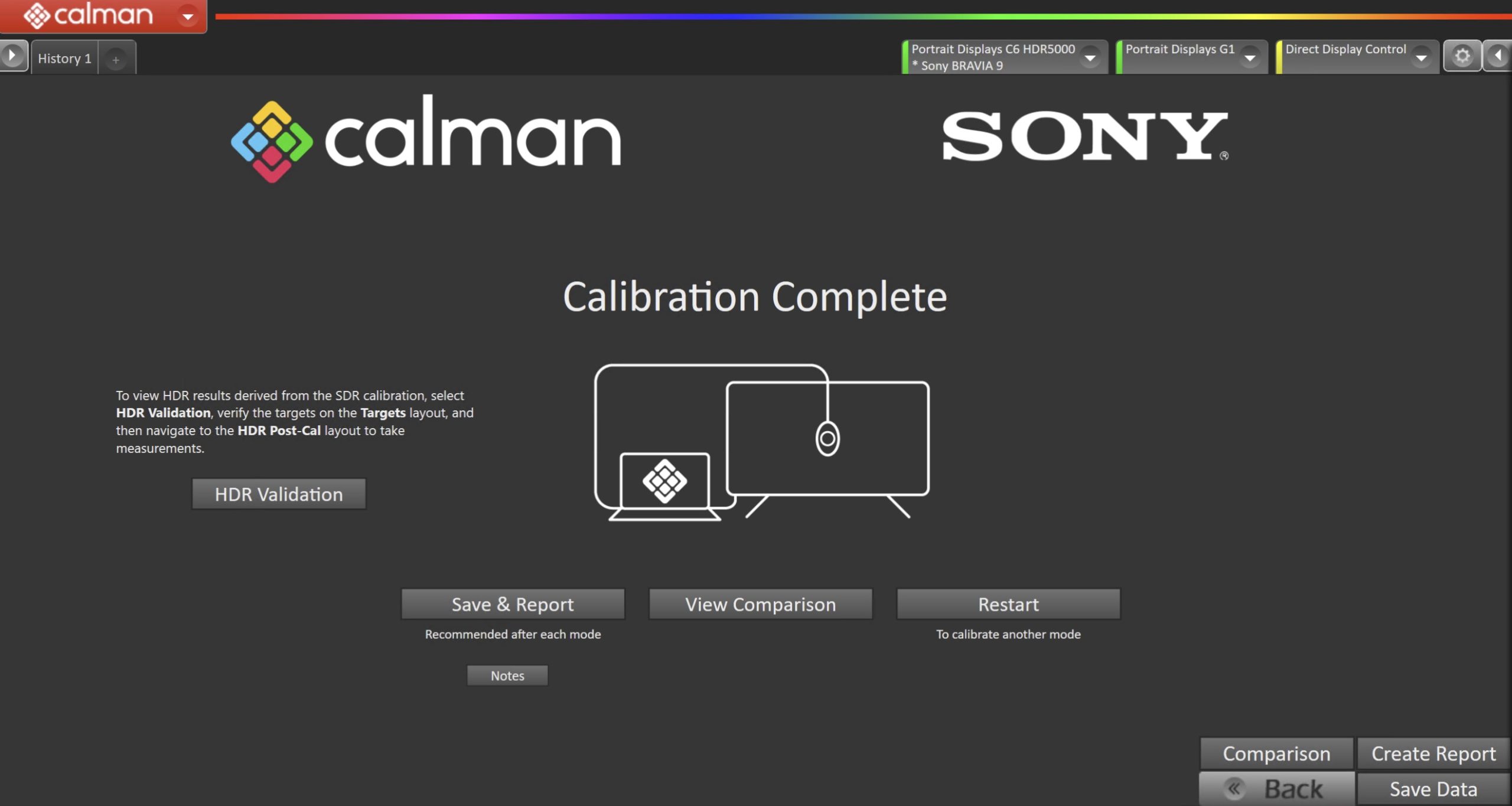 - On Sony BRAVIA TVs, HDR calibrations are derived from the SDR calibration and do not require a separate adjustment. Calman can be used to validate HDR performance by selecting HDR and capturing Pre-Cal measurements, then returning to this screen to select SDR and complete all SDR calibrations. After SDR calibration is complete, return to HDR to capture Post-Cal measurements.