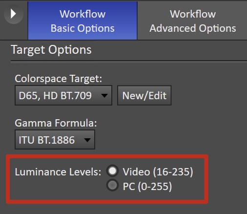 - From the Calman Workflow Basic Options panel, you can choose the range Calman will operate in. This determines how targets are determined and charts are generated