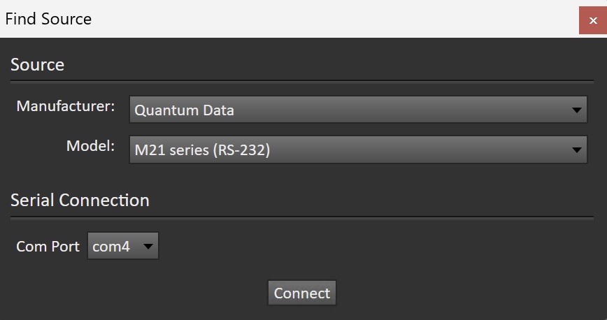 - On the Calman Find Source dialog, select Quantume Data – M21 Series